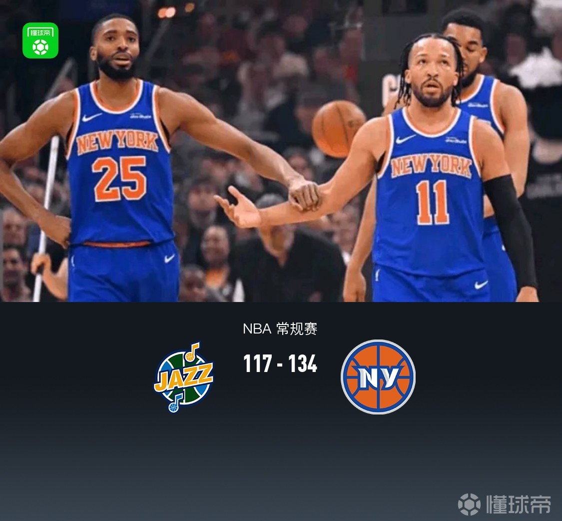 尼克斯四人20+,134-117逆转爵士,布伦森28+8,克拉克森27分